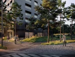 „Štyri obytné veže sú zasadené medzi zeleňou a stromami, ktoré vytvárajú prírodný ekosystém v oblasti s výrazne mestským charakterom,“ približuje slovinská architektka Špela Videčnik z Ofis arhitekti. „Zelená koncepcia sa opakuje aj na horných podlažiach. V tejto časti sú veže odstúpené a vizuálne vytvárajú dialóg s vrchmi Álp, ktoré sú vidieť v diaľke.“