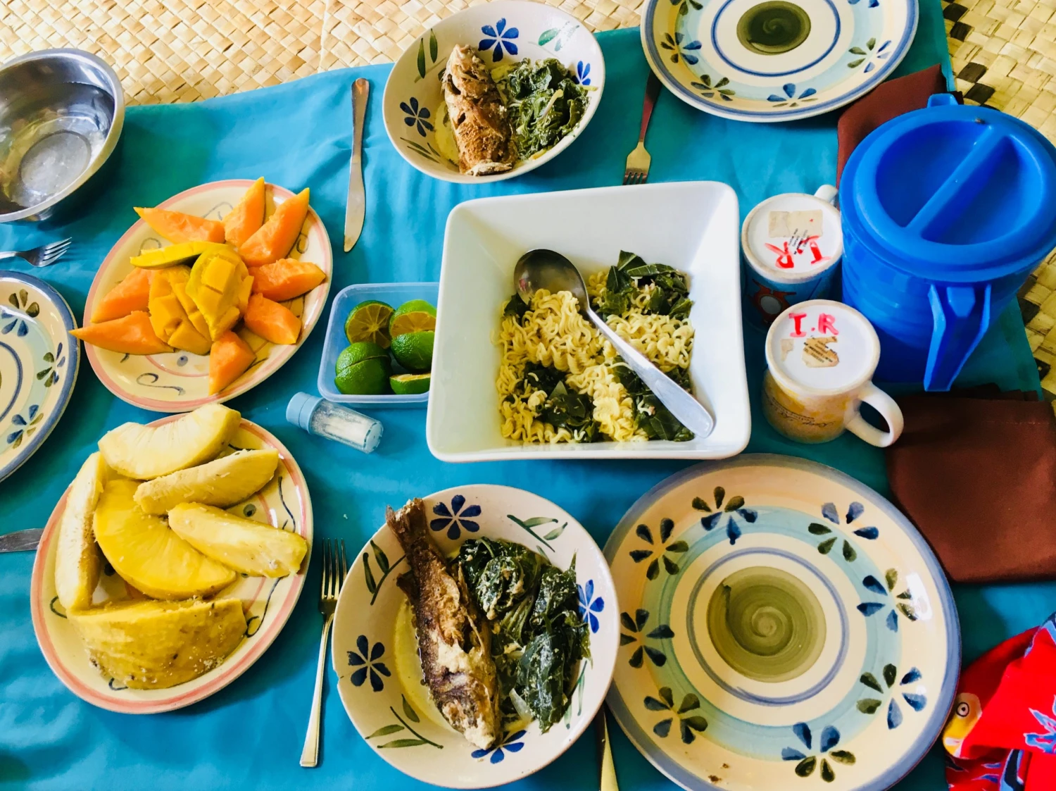 Vodu si zbierajú dažďovú a do nej pridávajú rôzne domáce ovocné sirupy. Stolujú zásadne na zemi, kde na obrus rozložia taniere a v niektorých domácnostiach mali pre nás dokonca aj príbor. Oni sami však jedia rukami, tak sme zahodili naše „západniarske“ spôsoby a pustili sa do jedla rukami aj my. Keď majú návštevu, nechávajú najesť sa najprv hostí a oni si dajú až to, čo zostane, preto som ich neustále posmeľovala, aby sme jedli všetci spoločne. Loďou im raz za čas dovezú zásoby cestovín, soli či cukru.