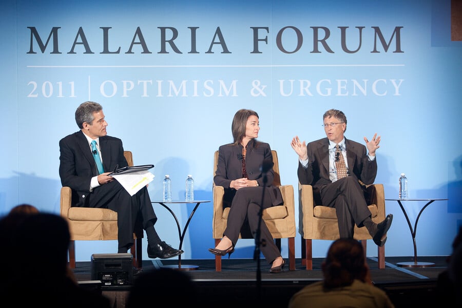 Bill and Melinda Gates address a forum of 300 malaria scientists and policy makers Wednesday, Oct. 17, 2007, in Seattle. The Gates' appealed to the group to join in the goal of eradicating the disease worldwide–a day when no human being has the disease and no mosquito carries it.,Image: 600882159, License: Rights-managed, Restrictions: This content is intended for editorial use only. For other uses, additional clearances may be required., Model Release: no, Pictured: Bill Gates,Bill Gates, Melinda Gates
