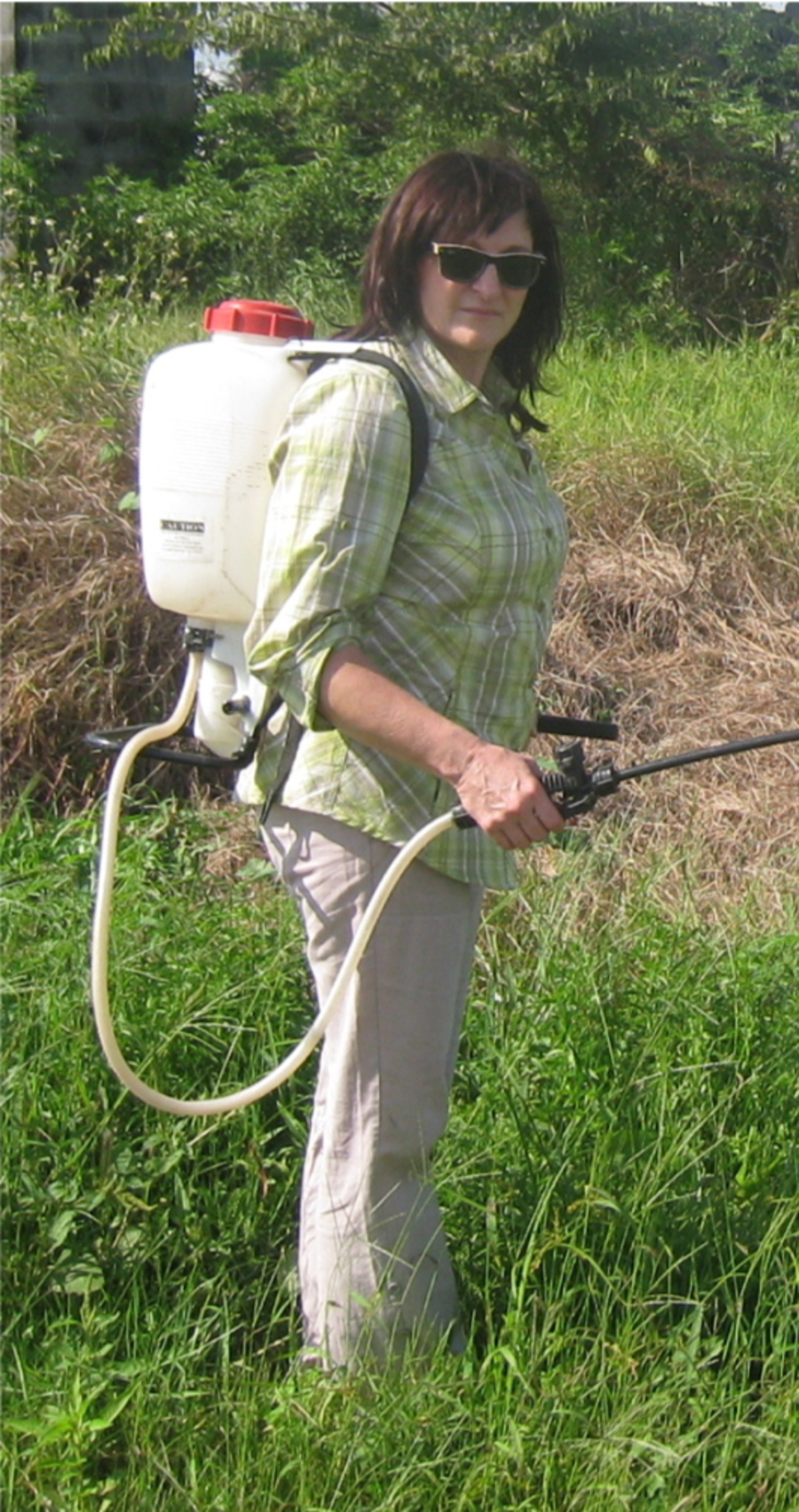 Edita Révay vykonáva na archívnom zábere postrek vegetácie. Foto: Edita Révay (archív)