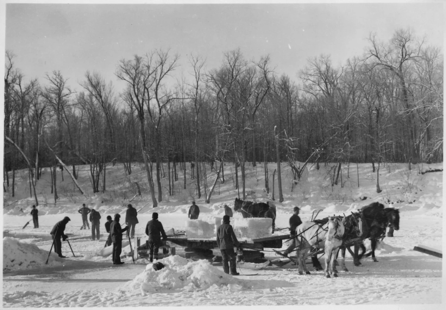 Keď vodná hladina zamrzla tak, že uniesla váhu človeka pri hrúbke troch až štyroch centimetrov, nastal čas, aby sa ľudia pustili do práce. Museli byť rýchli, pretože sezóna ťažby ľadu trvala zvyčajne len dva až tri týždne, kým ich topenie ľadu nevyhnalo z rieky.