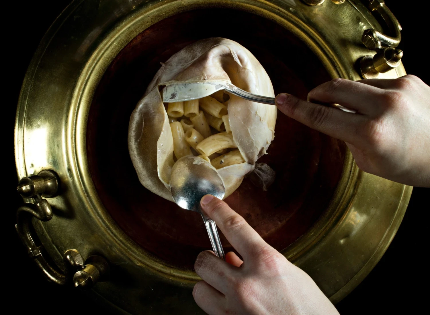 Čítal o rímskej technike, pri ktorej sa živočíšne orgány používali ako nádoby na varenie – opísanej v kuchárke zo 16. storočia od Bartolomea Scappiho, pápežovho kuchára.