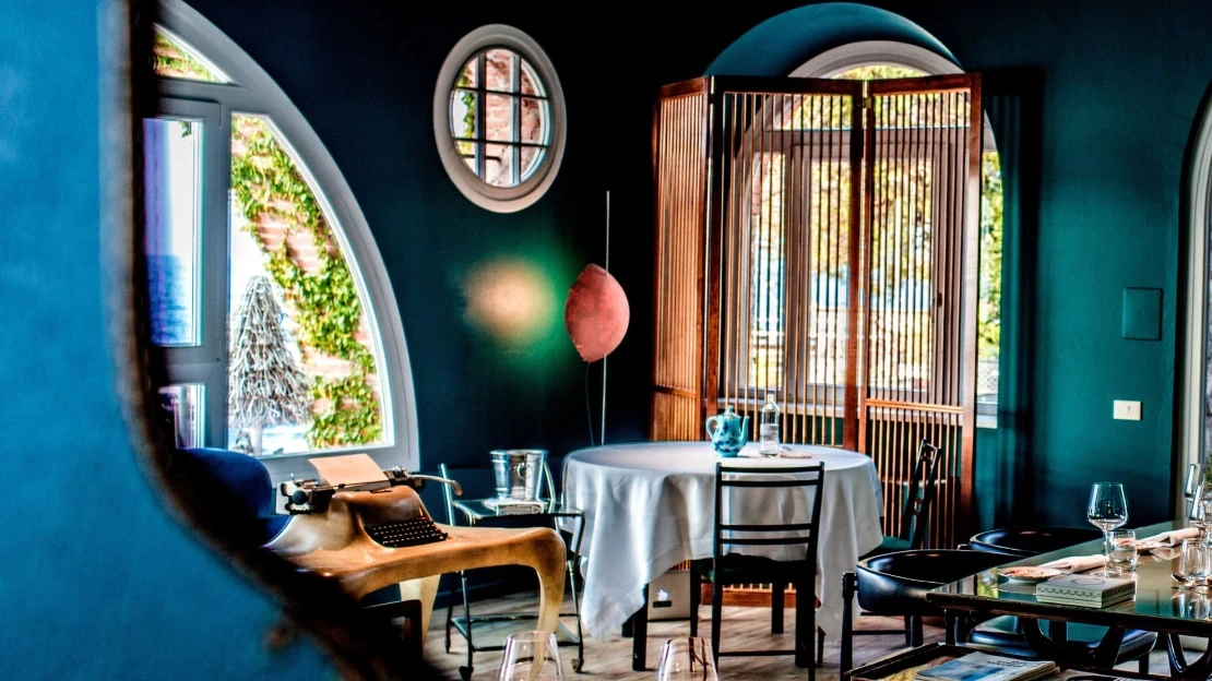 Ak budete mať šťastie na počasie, usadia vás vonku v záhrade – šum vody, vzrastlé stromy, jemný vietor od jazera. Nezabudnuteľné. V chladnejšom období sa sedí vnútri – v priestore inšpirovanom érou art deca a Felliniho filmami, s výhľadom na jazero.