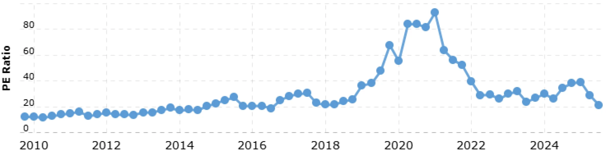 Súčasná výška cien akcií spoločnosti predstavuje výraznú zľavu oproti predchádzajúcim maximám. Skôr sa dá chápať ako výsledok korekcie sentimentu trhu a prehodnotenia rastových očakávaní, než efekt zásadného zhoršenia finančného zdravia. Z pohľadu fundamentov firma naďalej pokračuje v raste, prekonáva očakávania zisku a generuje vysoký cash flow.