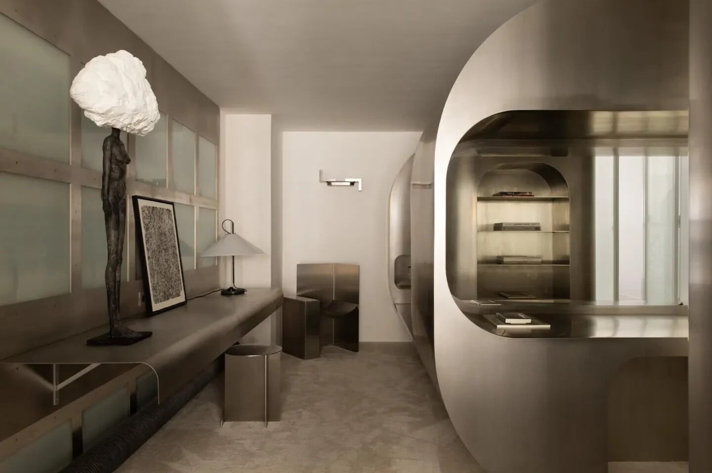 Na nižšom podlaží sa nachádza wellness zóna so saunou a hammamom, ideálna na oddych po dlhom dni strávenom prechádzkami po elegantných parížskych uliciach. Podľa spoločnosti Highstay wellness časť nadväzuje na „dizajnový nádych“ bytu hrou jemných kriviek a materiálov.