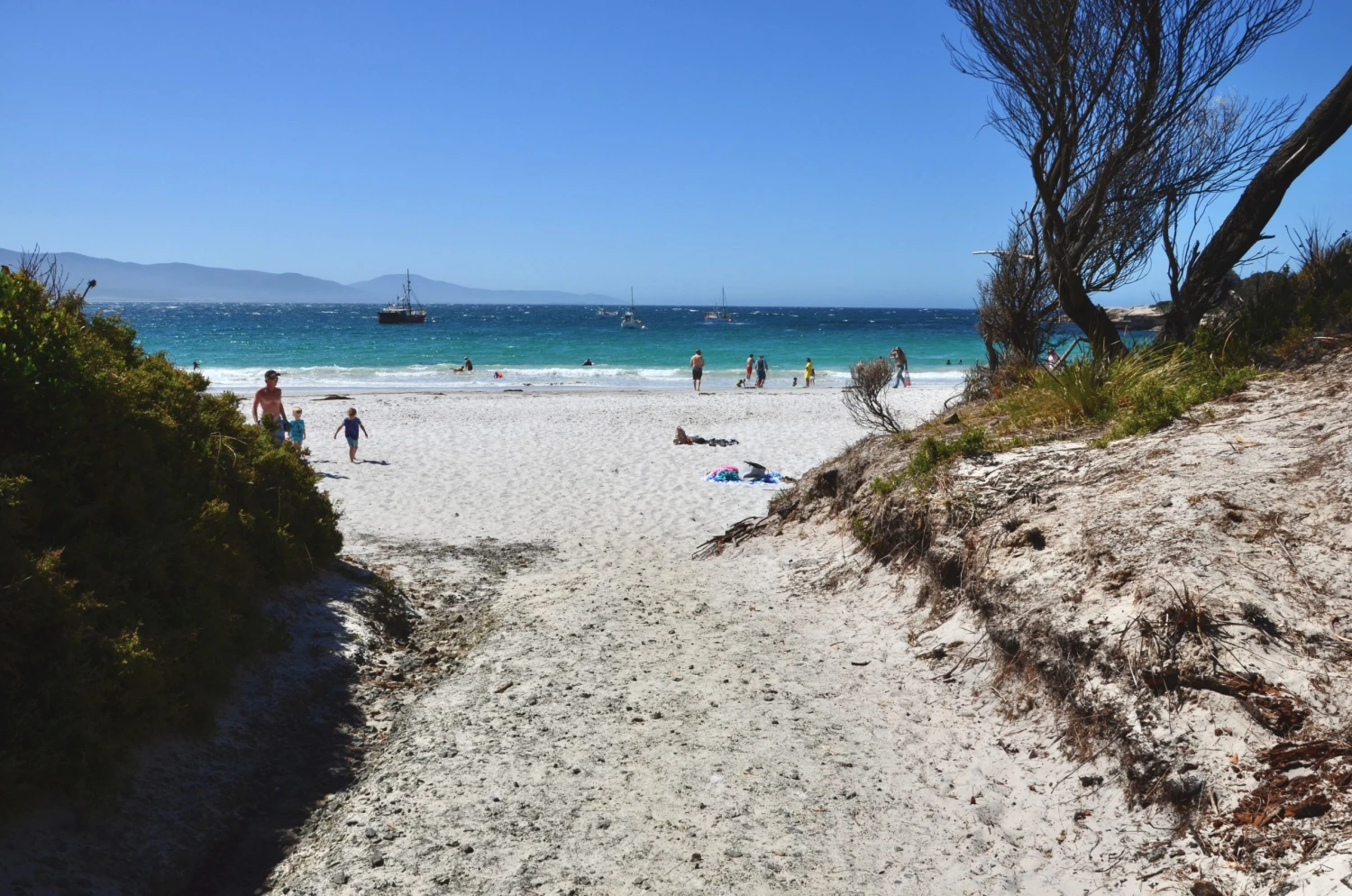 Žiadne ležadlá, žiadne slnečníky, žiadni otravní predavači, len autentická nádhera, pár opaľujúcich sa ľudí a na mori hojdajúce sa rybárske lode. V sezóne je to tu pravdepodobne plnšie. Letovisko je populárne aj tým, že po zotmení sa tu dajú pozorovať tučniaky, ktoré prichádzajú na súš a s brieždením zase odplávajú preč.